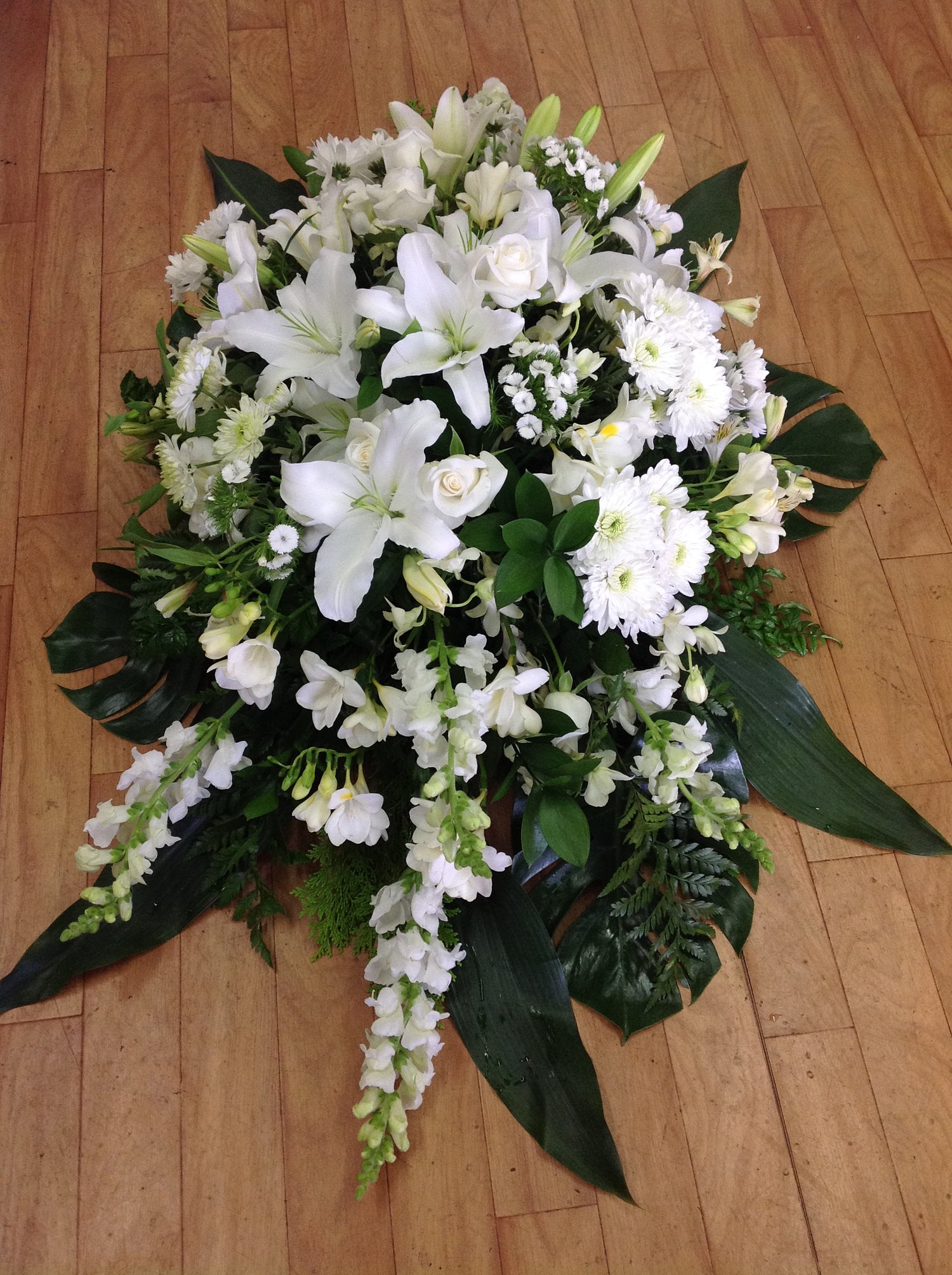 In addition to casket sprays, we can supply wreaths, garlands, bouquets, church arrangements, pew ends and more, all designed by our professional florists.